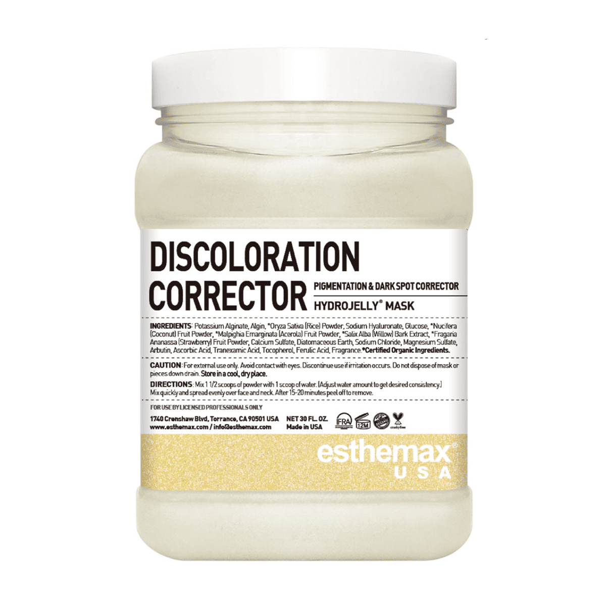 Esthemax Discoloration Corrector Hydrojelly® maska profesionalna je peel-off alginatna maska dizajnirana za tretiranje hiperpigmentacija, tamnih mrlja i neujednačenog tena. Zahvaljujući snažnoj kombinaciji Alpha Arbutina i Glutationa, učinkovito smanjuje proizvodnju melanina te vidljivo posvjetljuje i ujednačava kožu.